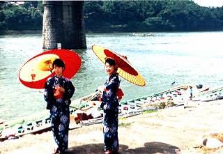 於、美濃加茂市中山道 浴衣で参加し、ステージイベントの手伝いをし 盆踊りを一緒に踊りました